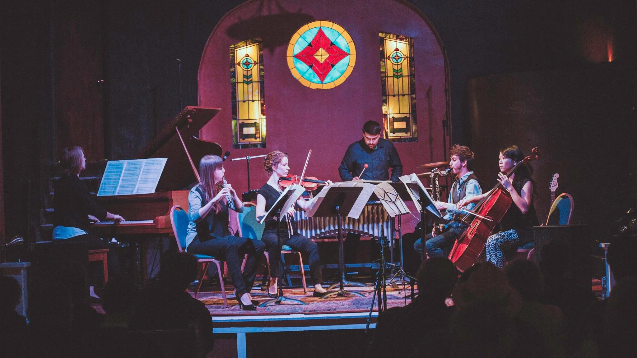 The Forward Motion Ensemble featuring: Corey Denham, Caitlin Foster (Ascending Duo), Tricia Frasure (Ascending Duo), Maya Nojiri Sutherland, Jenna Page, and Eric Salazar (Eric Salazar, clarinet)! Sunday, November 13, 2016 at 7 PM - 8:30 PMGrove Haus, Indianapolis, Indiana 46203 Recorded, Mixed and Filmed by Noisy Buffalo Productions.